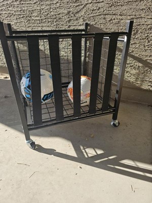 [This review was collected as part of a promotion.] I received this Heavy Duty Sports Equipment Storage Cart from Influensters. This care is built well and has wheels for rolling the cart around. It has elastic bands so that you don’t need to empty the rack just to get to the ball you need. It holds all the kids soccer balls basketballs and other random balls we have. Love the product and now we have something the kids will easily be able to find the ball they are looking for.