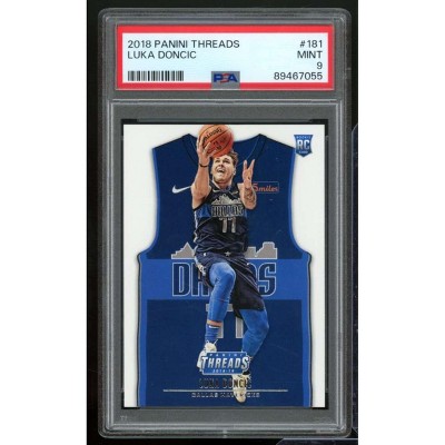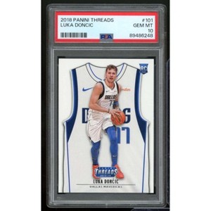 This card features Luka Doncic as a rookie from the 2018-19 Panini Threads set graded PSA 10. It is known for its premium design and quality.