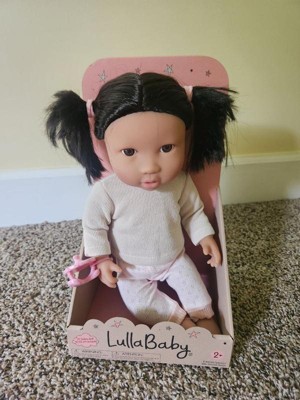 Discover precious playtime moments with LullaBaby. Made with lovable details and realistic features, this 14" baby doll has dark-brown hair to style, brown eyes, and a cuddly soft body for little hugs. Plus, kids can explore fashion fun and sweet storytelling with baby's cute sweater and pants outfit. It has easy-open closures to quickly put on and remove during changing time, and the pink pacifier fits in baby's mouth for soothing role-play. LullaBaby dolls are a must-have for parents looking to nurture young hearts and minds at an early age, encouraging imagination and inspiring kindness as kids play and grow with their baby dolls. Safety tested to meet all regulatory phthalates and BPA requirements. Makes a wonderful gift for kids ages 2 years old and up and is the perfect first baby doll for toddlers.