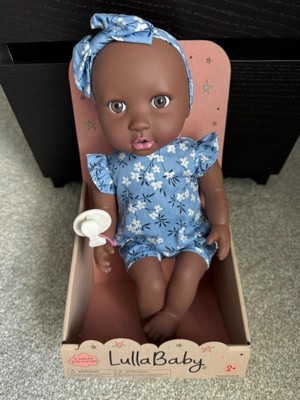 Discover precious playtime moments with LullaBaby. Made with lovable details and realistic features, this 14" baby doll has a friendly facial expression, brown eyes, and a cuddly soft body for little hugs. Plus, kids can explore fashion fun and sweet storytelling with baby's adorable outfit, including a floral onesie and matching bow headband. The pacifier also lets kids soothe their baby doll during role-play. LullaBaby dolls are a must-have for parents looking to nurture young hearts and minds at an early age, encouraging imagination and inspiring kindness as kids play and grow with their baby dolls. Makes a wonderful gift for kids ages 2 years old and up and a perfect first baby doll for toddlers.