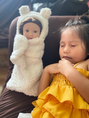 - Easy-Change Clothing: Baby doll comes dressed in sweet pajamas. Use the easy open closures to wrap baby in the ultra-soft, bear-themed cuddler for extra-cozy snuggles.