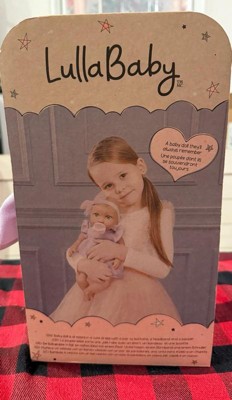 [This review was collected as part of a promotion.] This Lullababy doll is the cutest. It's so soft and cuddly. My 7 year old fell in love with it as soon as she saw it. The lashes feel soft and have an almost real like feeling. The eye color is just precious. The little dress is soft and made out of good quality material. It has a cute little headband with a bow on it for added style. It also comes with a cute little pacifier to soothe the baby doll. The doll measures 14 in. Just the perfect size for a little girl to play pretend. All we need now is to purchase accessories and 2 extra dolls for my nieces so they can all play together.