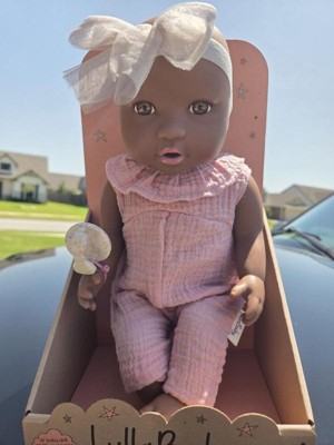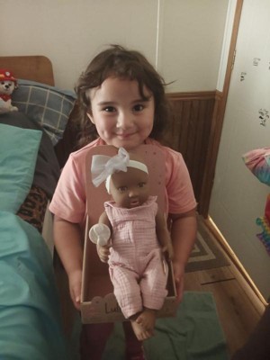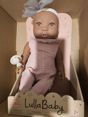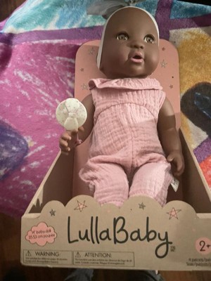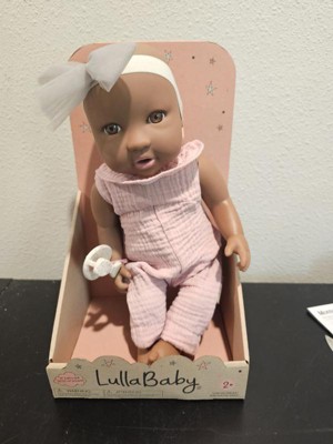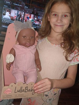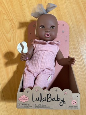Discover precious playtime with LullaBaby! This adorable 14" baby doll is designed with realistic features to delight little ones during role-play. It has beautiful dark-brown eyes, detailed hands and feet, and a huggable soft body for sweet cuddles. Little hands can easily remove baby's headband and pink jumper when it's changing time. Plus, the pacifier accessory fits in baby's mouth for gentle soothing. LullaBaby dolls encourage imagination and inspire kindness as kids play and grow with their baby dolls. Makes a wonderful gift for kids ages 2 years old and up and a perfect first baby doll for toddlers.