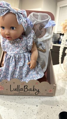 LullaBaby Baby Doll with Blue Eyes Floral Dress and Pajama Set