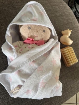 [This review was collected as part of a promotion.] This little set is so cute, my daughter had a baby doll already so we were able to use the set right away, she loves to play with toys in the bath so this was perfect, the little duck, wash cloth and brush are the perfect size for the standard baby dolls. When she got out the tub she was excited to wrap the baby in the little hooded towel that came with it.