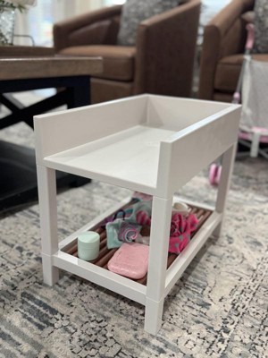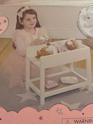 [This review was collected as part of a promotion.] This changing table is adorable and fits perfectly into a little one's imaginative play. The design is lightweight and easy to move around, making it a good fit for any play area. The setup was straightforward, and it pairs nicely with dolls of various sizes. My child enjoyed pretending to change her doll, adding wipes and diapers to the storage space underneath—it was fun to watch her creativity unfold.