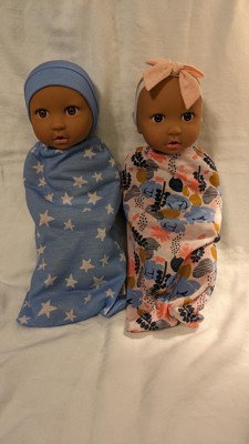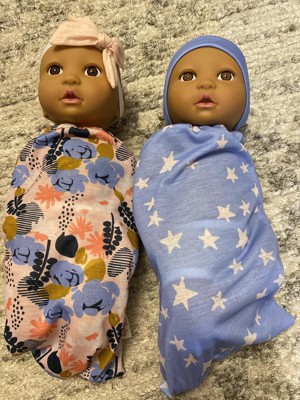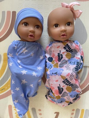 - Bedtime Routine: Get twin dolls ready for naptime by swaddling them in 2 gorgeous sleep sacks designed in a star and floral print pattern.