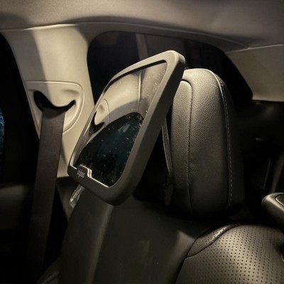 [This review was collected as part of a promotion.] This is a pretty neat mirror. The view is very large on it. You can see into the carseat very easily with this large crystal clear mirror. It mounts on to the headrest with easy. On the back of the mirror there is a a ball joint that allows you to twist and turn the mirror in any direction to ensure the nest view of your rear facing baby. The straps are also adjustable to tighten to any size headrest. I love how I can clearly see my baby! I received an incentive to write this review.