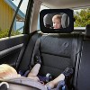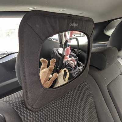 - The rear facing baby mirror for car seats features adjustable straps and buckles for easy installation and removal in most vehicles.