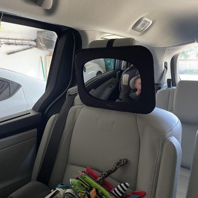 I really like this car mirror it has some features that other mirrors we tested didn't have. For example the form and to adjustable straps on the back that make it very stable on the headrest. I can turn that easily and adjust the angle to see both of my kids sitting on the back. I love that.