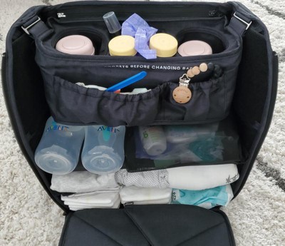 I have been searching for a functional, comfortable, nice looking diaper bag for over a year now. I finally gave up my search and used one of my personal travel totes with inserts because I didn't want to settle on what was out there. I figured, I would eventually find one that would fit all my needs and this bag does exactly that! It has a built-in changing pad (with an extra insert that buttons on), adjustable shelves -- (this is honestly one of its best features), a removable caddy that you can use to hang on your stroller or keep in the bag for additional pockets and storage compartments, a place to store my laptop, and a comfortable backpack that both my husband and I could wear. This bag checked all the boxes so I was thrilled when I came across it. I used it for the first time yesterday and it met every one of my needs and was so easy to use. I highly recommends this bag!!