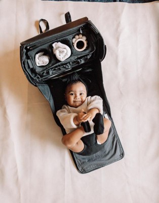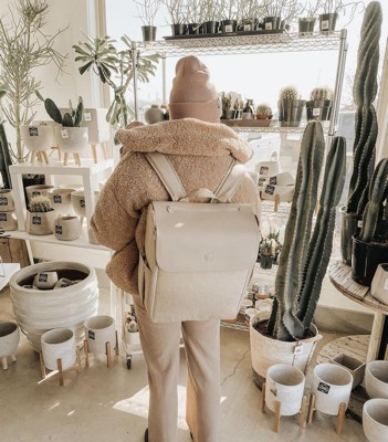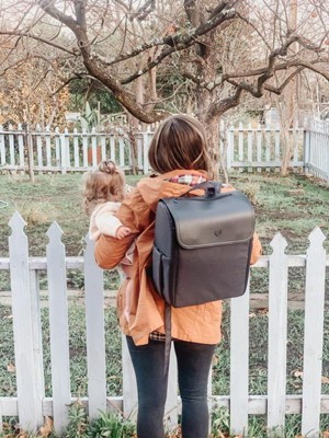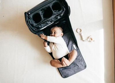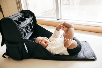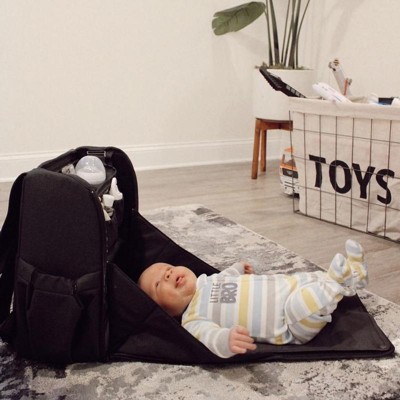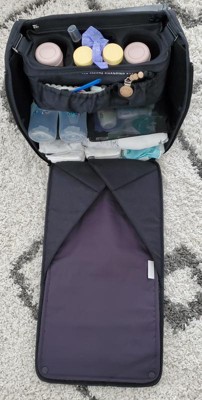 Its modular interior lets you customize storage compartments for maximum space efficiency. The detachable bottle and smartphone pockets convert into a stroller caddy, providing hands-free phone access on the go. Insulated side pockets help keep bottles warm throughout the day. When fully opened, the backpack transforms into a diaper changing station with a removable, washable surface. It also features a dedicated pocket for a tablet or laptop and additional compartments for keys, wallet, and other essentials.