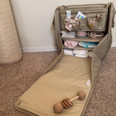 I have this diaper cubby and I absolutely love it! It helps me stay organized and fits everything I need!! I use this as an everyday bag, but I especially love it for when I am traveling! It also has a fold out changing pad which I love! I must also say, it is my husband’s favorite bag to take when he takes the baby to work with him!