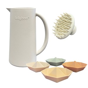 The Lulyboo baby bath and play set is an essential collection of tools and products designed to make bath time safe, comfortable, and enjoyable for both infants and toddlers. This gender-neutral, well-curated baby bath set offers an all-in-one solution to your child’s bathing needs, providing both functionality and peace of mind. The Lulyboo baby bath and play set includes rinsing cup, scalp brush and boat bath toys - carefully selected items that cater to the specific needs of babies, whose delicate skin and sensory sensitivities require extra care.