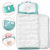 This nap mat is a practical choice for our family gatherings. The built-in pillow and blanket provide great coziness, making it suitable for daycare or travel. It rolls up easily for storage in our small apartment. Nothing special, but it meets our needs and is machine washable for convenience.