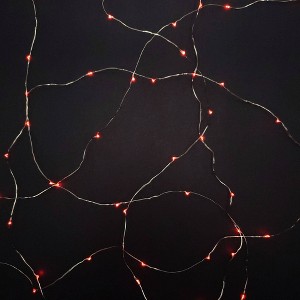 - Set of two battery-operated fairy string lights with 50 red LED lights per cord