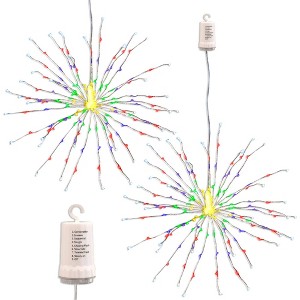 Illuminate your home with this pair of battery-operated starburst lights with remote control from LumaBase. Easily hang these mesmerizing lights anywhere using the built-in hook. Enjoy the glow of the brilliant LED lights as you use the remote control to switch between eight different modes: combination, wave, sequential, slow glow, flash, slow fade, twinkle, and steady. Battery-operated starburst lights are a perfect accent both indoors and out. Each starburst light requires four AA batteries (not included) and remote requires one CR2025 battery (included).