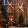 Elegant star-shaped hanging lanterns from LumaBase are a beautiful way to decorate for a party or event. This set of 3 metallic gold lanterns are constructed of cardboard and feature an intricate punched-out swirl design. The die-cut swirls allow natural light to pass through the lanterns and enhance the overall design. Use the pull-cord to open, lock, secure, and hang the lantern anywhere indoors.