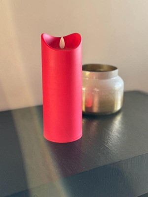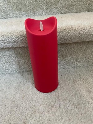 Add a touch of elegance to your home décor with this festive battery-operated 9" red pillar candle with moving flame from LumaBase. This motion flame pillar candle features a red exterior and a convenient 5 hour timer paired with a battery operated LED light. The battery operated LED pillar candle casts an ambient warm amber glow with the natural touch of its action flame, making it the perfect accent lighting for a special occasion, event, or your everyday home décor. The plastic construction makes the battery operated motion flame pillar candle resistant to dings and dents, making it a practical addition to your décor. Candle requires 2 D batteries (not included).