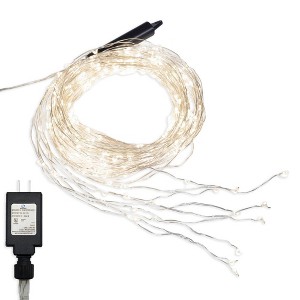 Electric multi-strand LED fairy string lights from LumaBase will bring a magnificent ambience to a special event or your everyday home décor. The ten bendable wire strands are connected to one plastic post with a hole for hanging. Bundle or separate the individual strings to create a mesmerizing display. The glowing micro LED lights look like a glimmering droplet of water clinging to a shiny wire. These weatherproof lights are perfect for illuminating floral arrangements, tabletop displays, mantels, ornamental bushes, and so much more.