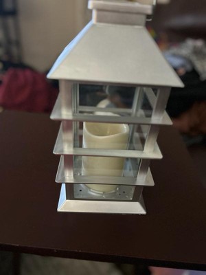 [This review was collected as part of a promotion.] This rustic themed lantern looks perfect in my farmhouse-style home. The silver finish gives it a real life look. The handle on top also gives it a cute and practical feel. You can hang it anywhere since it is very light weight, or you can place it on top of something. Either way, it gives off a charming vibe. I also love how it is durable and made for both indoor and outdoor. This makes it versatile and allows you to move it around based on your needs. The candle gives off a realistic flickering light. The brightness of the solar light is perfect for both indoor or outdoor use. I would recommend this solar powered lantern to others. It looks amazing, works great and is versatile.