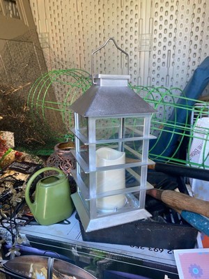 Charged by the sun, this classic solar-powered lantern will highlight the look of your outdoor décor from dusk until dawn. The flickering amber LED candle adds a warm glow of illumination. This lantern can be placed anywhere outdoors without extension cords. The sturdy plastic and glass construction makes this lantern perfect for the outdoor elements. Keep lantern in a sunny area every day to charge the panel for nighttime illumination. With a handle, this lantern can hang from a shepherd’s hook and be displayed along a walkway.