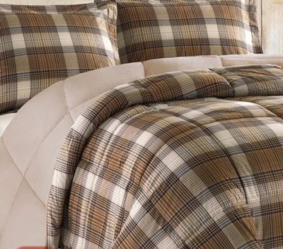 For a cozy cabin look, update your room with the Woolrich Lumberjack quilted microfiber down alternative comforter set. This ultra-soft and cozy comforter set features a khaki and brown plaid pattern printed on microfiber fabric for comfort and style, solid on the reverse side. Softspun microfiber fabric is an alternative to flannel that is more durable and lightweight. The beige color on reverse and matching shams complete the ensemble with a charming touch. Additional warmth and comfort is provided with the hypoallergenic down alternative filling, while the sewn-through classic box-quilting prevents the filling from shifting and gives a finishing touch. Machine washable for easy care, this comforter set is perfect for sprucing up your space. This comforter is also OEKO-TEX certified, meaning it does not contain any harmful substances or chemicals to ensure quality comfort and wellness. Set includes: 1 Comforter and 2 Shams (or 1 Sham for Twin sizes).