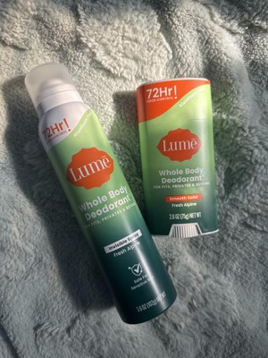 [This review was collected as part of a promotion.] I grabbed the Lume Deo Spray 3.6oz in Alpine and honestly, the scent took me a minute to get used to. It’s super outdoorsy, like you’re walking through the woods. Not your typical sweet scent, but it grew on me. I shower every day and this stuff actually lasts all day without reapplying. Light, fresh, and different from anything else I’ve tried.