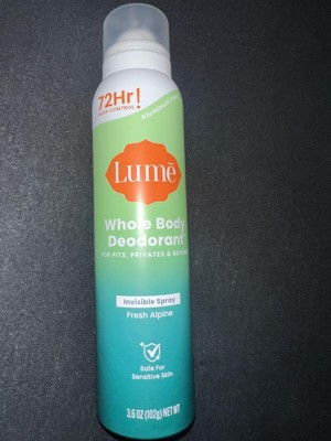 [This review was collected as part of a promotion.] ’ve been using the Lume Fresh Alpine Spray, and I’m really impressed! The scent is clean, fresh, and not overpowering—perfect for everyday wear. I love that it works on both underarms and other areas, making it super versatile. It dries quickly, doesn’t leave any sticky residue, and actually lasts throughout the day. I also appreciate that it’s aluminum-free and gentle on my skin. Definitely a product I’ll keep using, especially on busy days when I need something reliable.