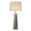 The Lumi Silver Table Lamp features a brilliant ribbed glass base with subtle accents to make it stand out from the crowd. This light features a double pull chain feature and off-white shade to enhance its classic character. This piece exemplifies superior product design and great styling at an unbeatable price. It will pair well with nautical and eccentric styling and is sure to be a conversation piece. Regardless if you put it in the bedroom or family room, this lamp stands out. Suitable for residential use in a dry location.