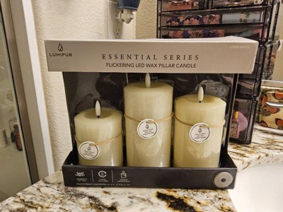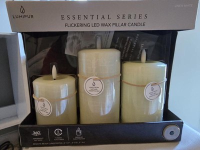 LumiPur 3pk Essentials Natural Glow Flameless Flickering Wax Pillar LED Candles Gray Fog