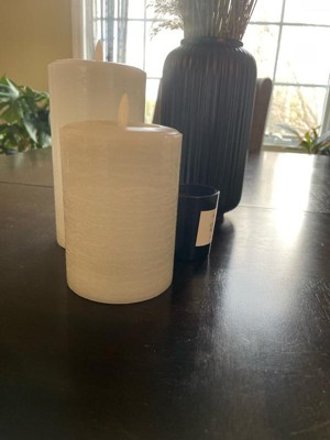 [This review was collected as part of a promotion.] I really like the look and feel of the pillar candle itself. The paraffin wax coating makes it look more realistic. I do wish the flame was a little bit nicer, it does flicker and give the illusion that it is a flame, but it’s not quite as good as I wanted it to be. These do have a timer, which is great it does work. I do wish it came with a remote as well.