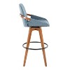 Mid-Century inspired, the Cosmo Fixed-Height Barstool by LumiSource combines style and comfort! An upholstered seat is accented by stylish bamboo armrest and legs, with smooth swivel capability. The bamboo fabrication is sturdy and sustainable combined with the soft upholstery. Available in a variety of color combinations, choose the one that fits your space the best.