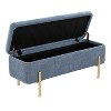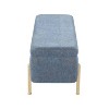 Fall in love with the contemporary style and comfort of the Daniella Storage Bench by LumiSource. This bench is perfect for the foot of your bed, an entryway, or anywhere your decor needs some extra flair. This sturdy bench provides convenient storage along with a stylish look. The Daniella Storage Bench features fabric upholstery accented by luminous gold metal legs. Open the flip-top lid to find a roomy storage area where you can conveniently hide magazines, remote controls, and anything else you want to keep out of sight. Available in a variety of finishes and upholstery options, choose the one that fits your area the best!