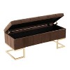 The Midas Storage Bench by LumiSource provides convenient storage along with a stylish look. Perfect for extra seating, an entryway, or at the foot of a bed, the Midas Storage bench features a geometric gold metal frame, and sleek button-tufted velvet upholstery. Open the flip-top lid to find a roomy storage area where you can conveniently hide magazines, remote controls, and anything else you want to keep out of sight.