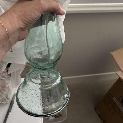 LumiSource (Set of 2) Bishop 25" Contemporary Table Lamps Clear Angel Blue Seeded Glass, Polished Nickel and White Linen Shade