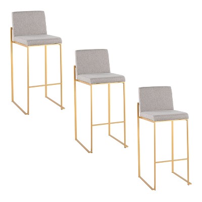 LumiSource Set of 3 Fuji High Back Counter Height Barstools Steel Fabric