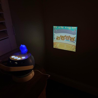 [This review was collected as part of a promotion.] This storytime projector is so much better than the other name brand child projectors! I already own one of the big name brand story projectors, but I decided to give this one a try. I will say that this projector includes all of the things the other one lacks. There is no need to adjust the picture, it just clearly shows up right when you turn on. There are minimal buttons, which make it user friendly for very young children. I love that this projector includes a stand to place it on so it stays in place once you figure out where you want to watch the image- something the other brands did not think of! The bonus feature of this is the night light with different colors to choose from and lullaby songs. You can either plug this in USB or use batteries- perfect for trips! I like the handle included too so that your child can easily carry. This is the best!!