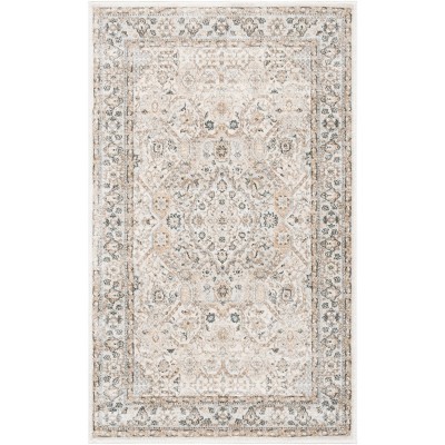 The enchanting hues of beige and blue flawlessly infused with rustic overtones create a visual symphony that complements any room, s decor. The rug's timeless pattern brings a touch of traditional elegance, featuring ornate medallions and an intricate border, drawing on the classic designs found in ancient woven textiles.