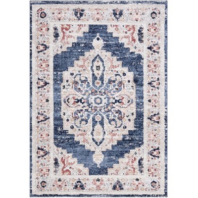 The serene palette of beige, blue, and rust interweaves to shape a visually stunning pattern, reminiscent of antique designs and rich cultural heritage. The intricate detailing and symmetrical motifs showcase a central medallion surrounded by ornate borders, each element harmoniously balanced to captivate the eye and enrich your home decor.