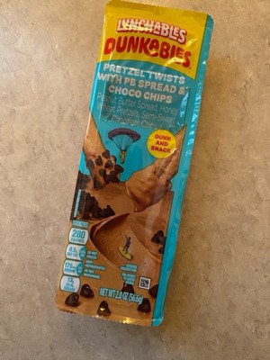 - Lunchables Dunkables contains honey wheat pretzels, peanut butter spread and semi-sweet chocolate chips