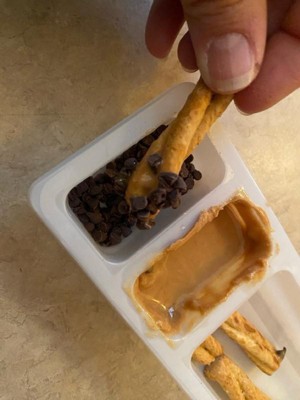 [This review was collected as part of a promotion.] Great snack for the kids! The peanut butter and chocolate chips tasted pretty good. It was fun for the kids to dip in the peanut butter and then the chocolate chips. The only negative was the pretzel sticks were quite hard and my kids didn’t really love the honey taste on the pretzels. I received this in exchange for my honest review.