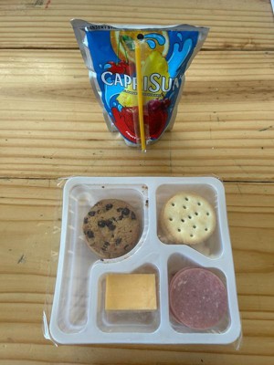 - Ham with water and smoke flavor added, American pasteurized prepared cheese product, crackers, chocolate chip cookies and Capri Sun Fruit Punch flavored juice drink blend from concentrate Pouch