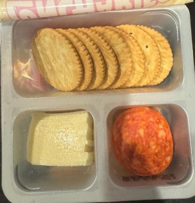 The image is deceptive. The cheese comes in small rectangles and the crackers are a little too sweet for what it goes for. The pepperoni also runs really thin.