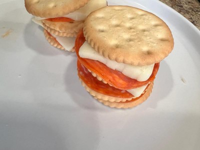 - Contains mozzarella pasteurized prepared cheese product, pepperoni and buttery, flaky crackers