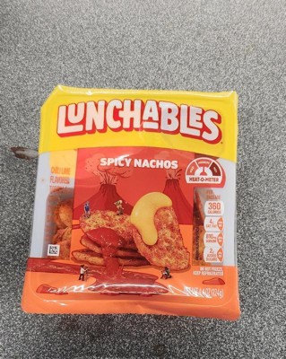 - One 4.4 oz pack of Lunchables Spicy Nachos with Chili Lime Flavored Tortilla Chips, Cheese Dip & Salsa
