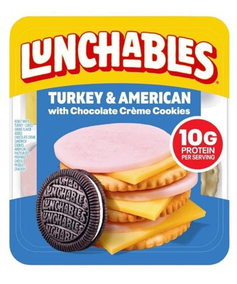 - One 3.2 oz pack of Lunchables Turkey & American with Chocolate Creme Cookies