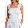• A: The dress has elasticized straps adorned with playful ruffle details for a charming look.
