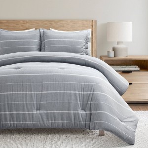 Designed with a modern stripe pattern, the Lush Decor Classic Farmhouse Woven Striped Comforter Set is just what you are missing for your layered bedding look. The thin white lines resemble a chalk stripe design on a neutral background. This soft comforter set is ideal for a primary or guest bedroom where you want to introduce subtle pattern. The simple design of this bedding set makes it perfect for layering and accessorizing with your favorite blankets and pillows. This 3 piece striped bedding set includes 1 comforter and 2 pillow shams. Crafted from a cotton fabric blend, this striped comforter set offers both softness and breathability. The medium-weight polyfill filling of this bedding comforter sets is perfect for any season. To care for this bedding set, simply machine wash cold on the gentle cycle and tumble dry low. Use an iron on low heat to release wrinkles, if needed.
