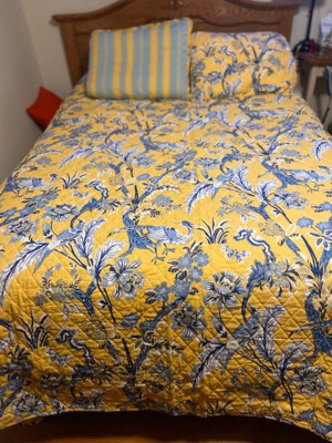 [This review was collected as part of a promotion.] I needed a little color on my bed i got the Dolores Yellow/ Blue quilt and am so impressed. I love the feel and the look. So bright and beautiful and keeps ya at a nice temperature at night. Would recommend for anyone that loves quilts